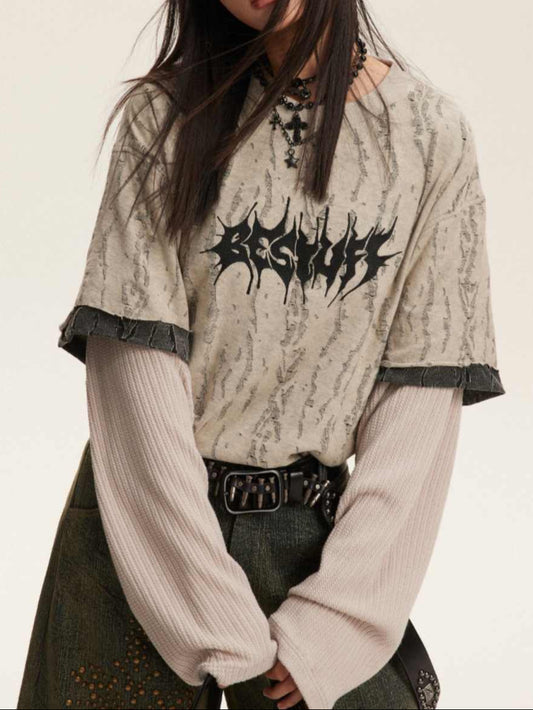 Grunge Letter Round Neck Sweatshirt