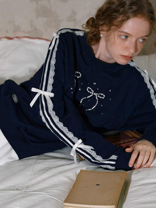Preppy Bow Lace Coquette Sweatshirt