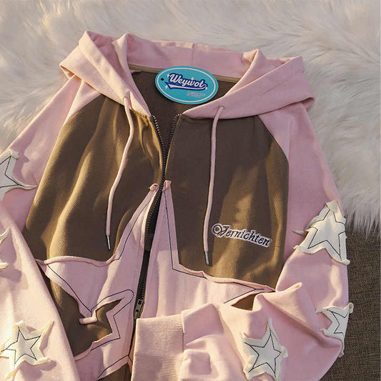 Star Patch Zip-up Y2K Hoodie