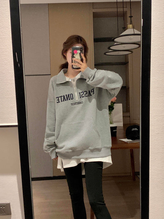 Half Zipper Polo Collar Preppy Sweatshirt