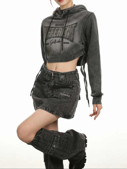 Acubi Motorcycle Zipper Crop Hoodie