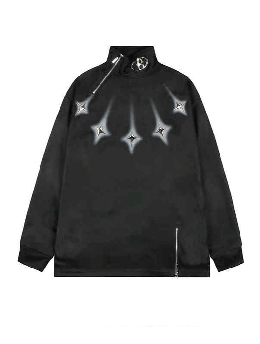 Acubi Metal Star Suede Stand-up Collar Sweatshirt