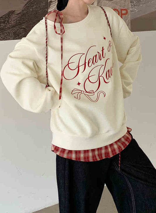 Preppy Red Plaid Hem Sweatshirt
