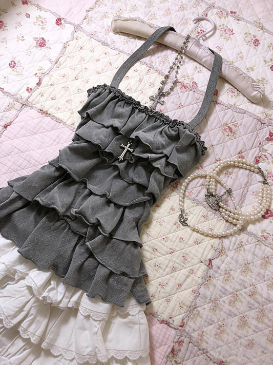 College Beige Shirt Vest Half Cake Three-piece Suit