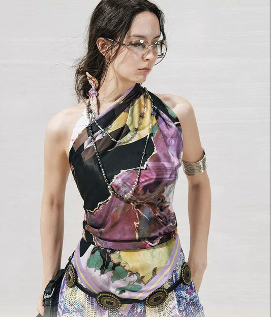 Hand-painted Vintage Satin Square Scarf Tube Top