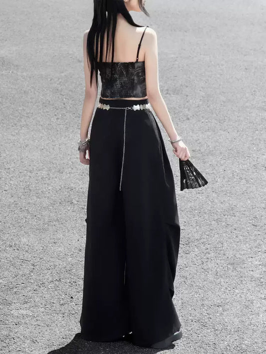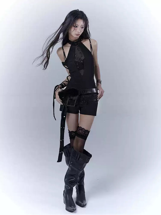 Grunge Lace Stitching Leather Tank Top