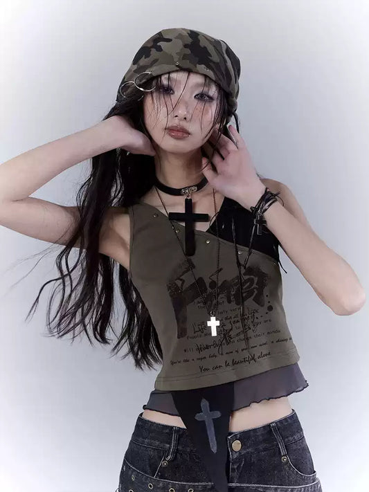 Grunge Wasteland Slim Printed Vest Top