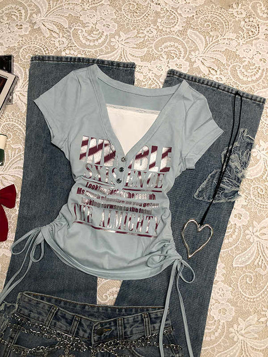 Lace Edge Letter Retro T-shirt