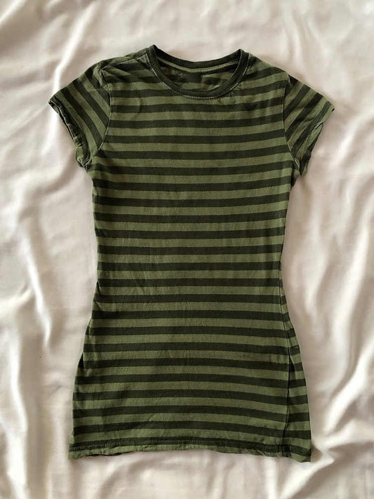 Y2K Grunge Green Striped T-shirt