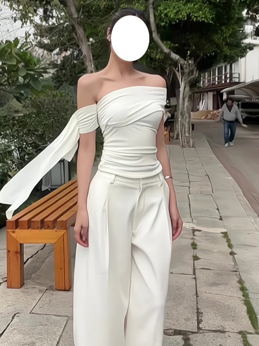 Y2K Irregular Off-Shoulder Long-sleeved Top