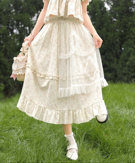 Floral Lace Splicing Skirt Set