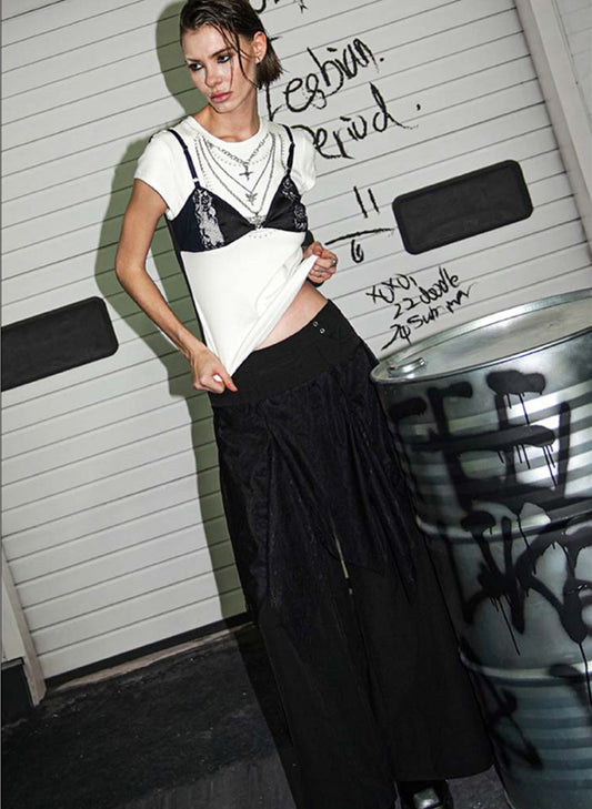 Dark Coquette Off-shoulder Lace Straps Sweater