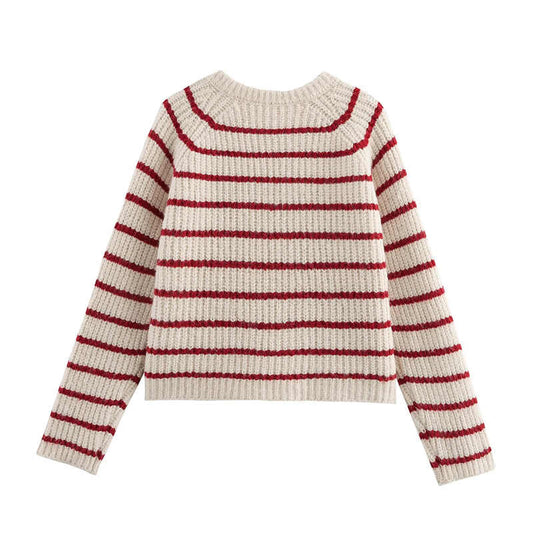 Preppy Round Neck Striped Wool Cardigan