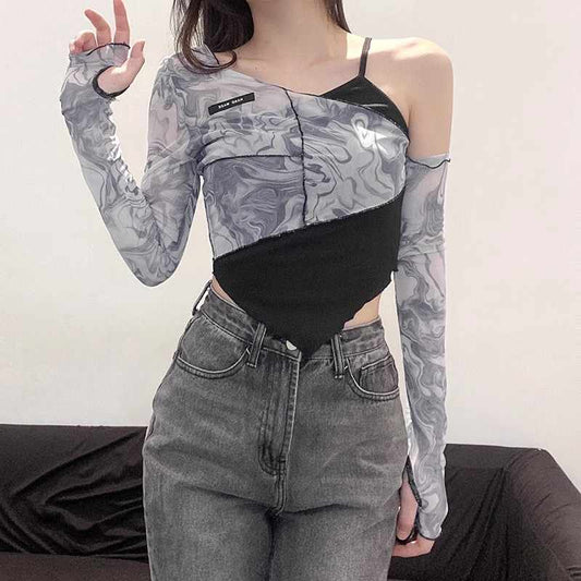 Acubi Irregular Mesh Long-sleeved Top