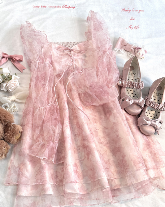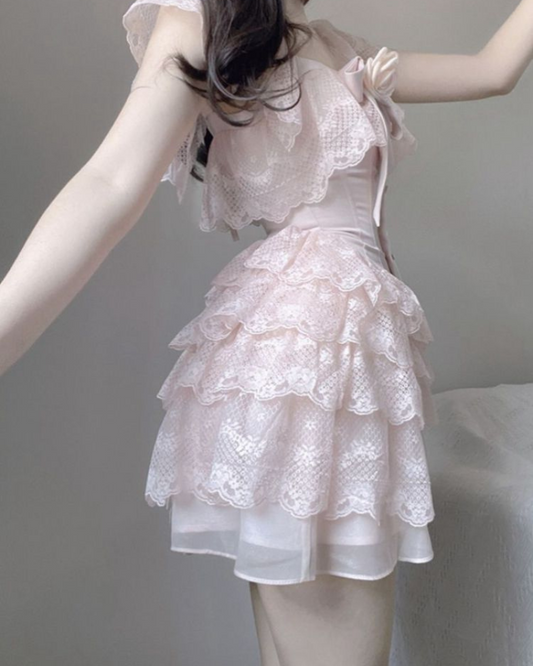 Sweet Flower Waist Slimming Cake Mini Coquette Dress