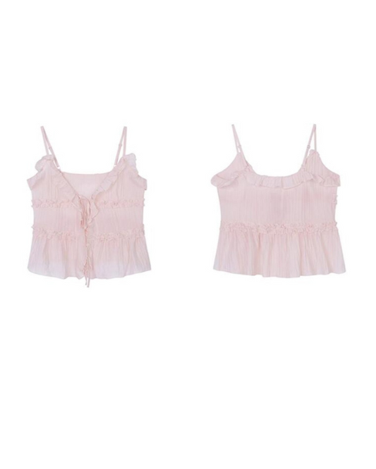 Pink Layered Lace Translucent Sweet Coquette Top