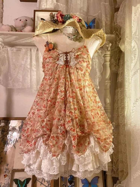 Fairy Lace Fishbone Floral Dress