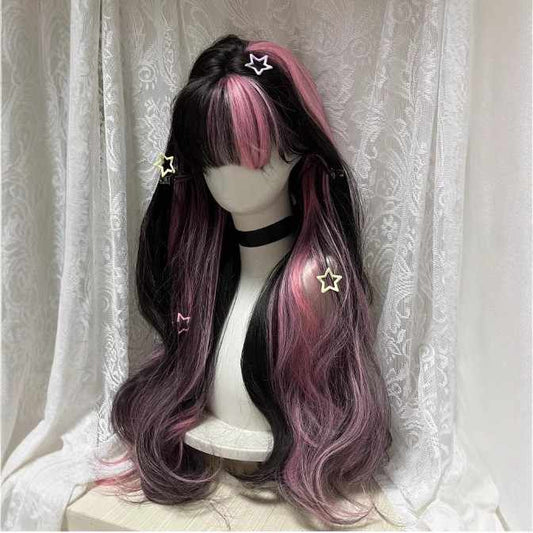 Black&Pink Long Curly Wig