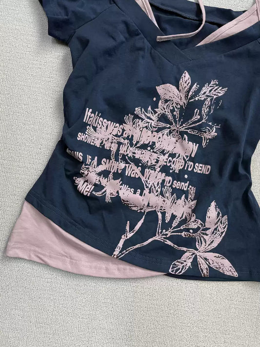 Blue off-shoulder short-sleeved T-shirt