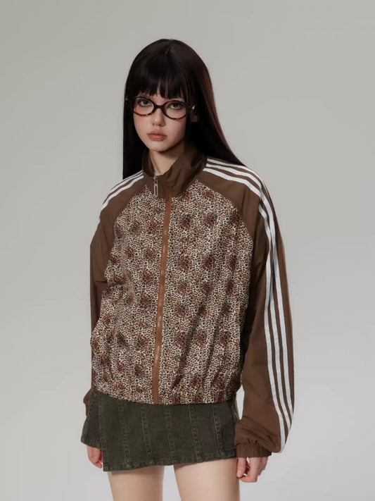 leopard print splicing jacket