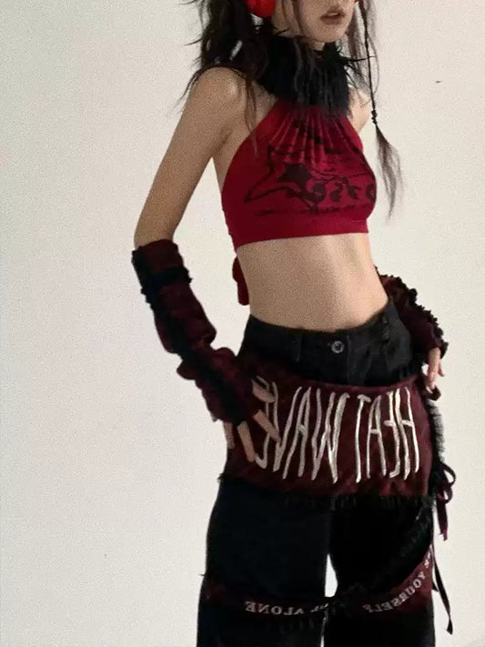 y2k gray halter-neck camisole