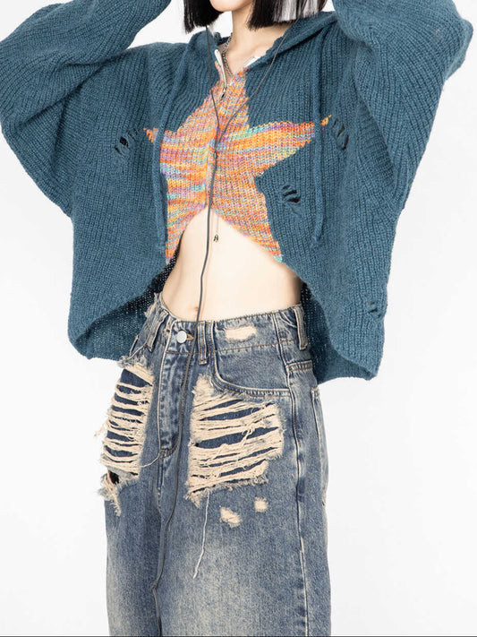 Y2K Star Patch Hooded Sweater