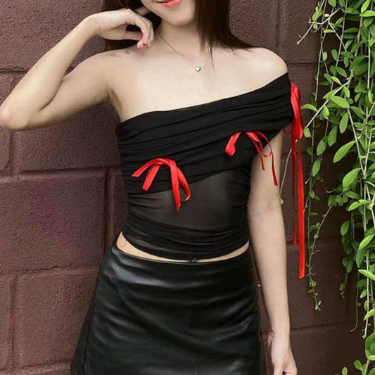 Blokette Plaid Off-shoulder Y2K Long-sleeved Top