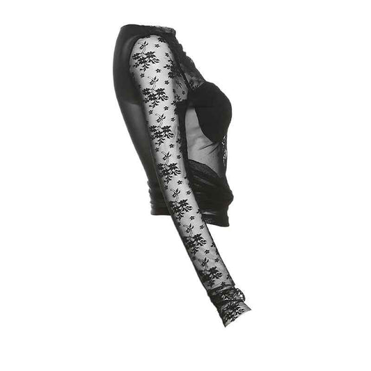 Mesh Lace Hollow Dark Coquette Long-sleeved Top