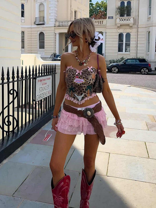 Y2K Leopard Bow Crop Top
