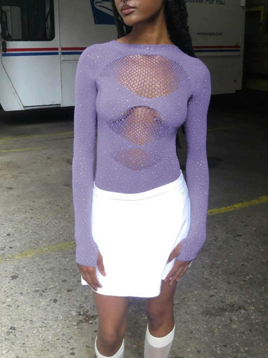 Y2K Hot Girl Hollow Mesh Long-sleeved Jumpsuit