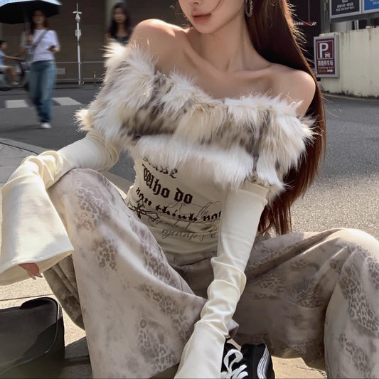 Furry Off Shoulder Long-sleeved Top
