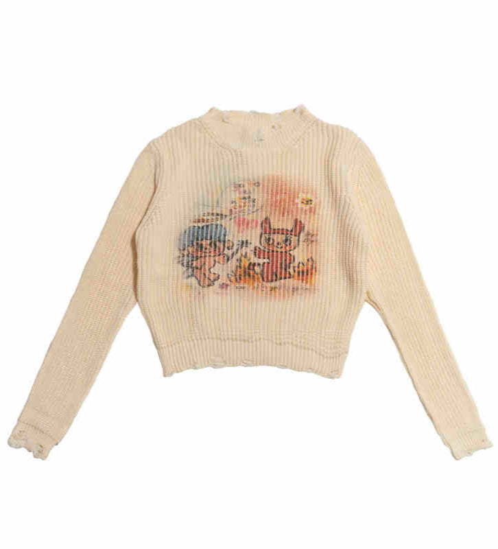 Angel Devil Printed Beige Sweater