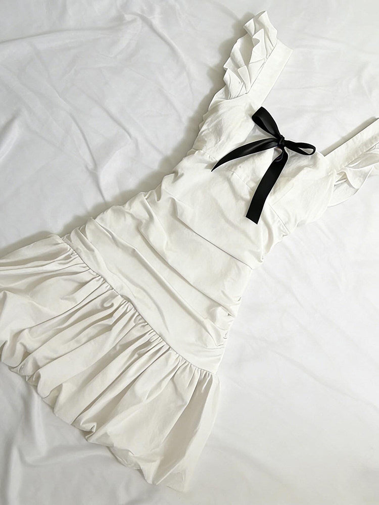 Elevate your wardrobe with this striking black bow suspender white dress—a timeless piece that effortlessly blends sophistication with playful charm. The crisp white fabric provides a clean canvas, while the bold black bow suspenders add an unexpected touch of elegance and personality. Perfect for creating a polished look that transitions seamlessly from day to evening, this dress captures attention without compromising on comfort or style. Whether you're dressing up for a special occasion or making a statement at everyday gatherings, this versatile piece ensures you'll stand out with confidence and grace.