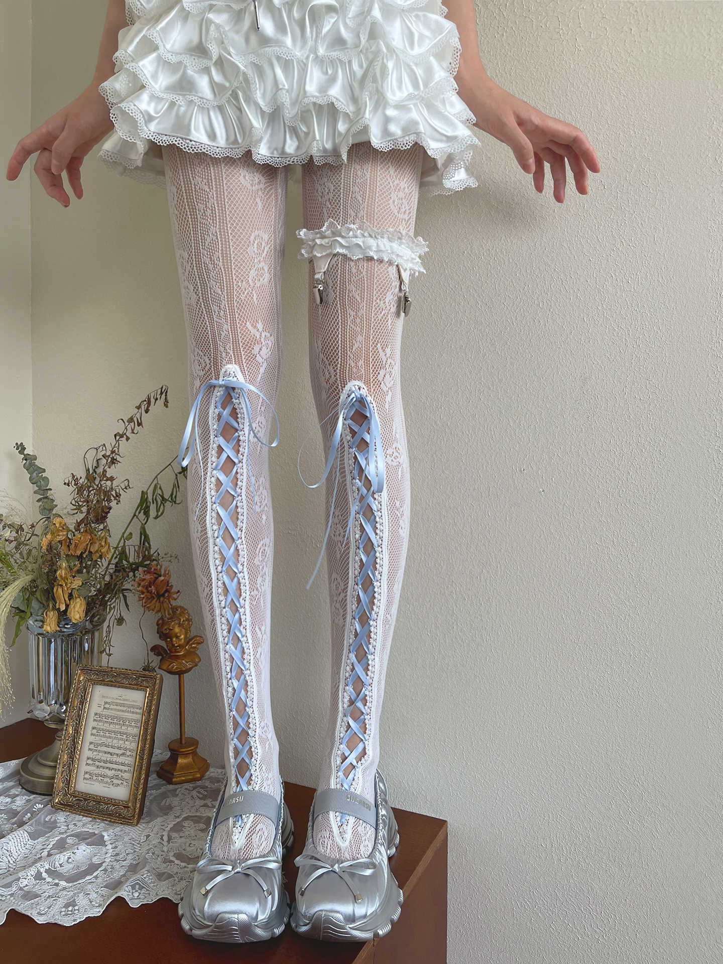 Blue Ribbon Lace Socks