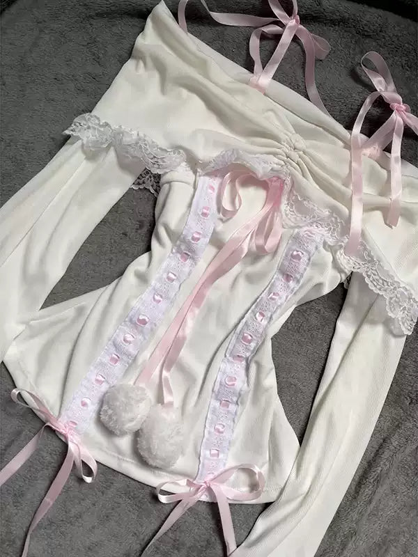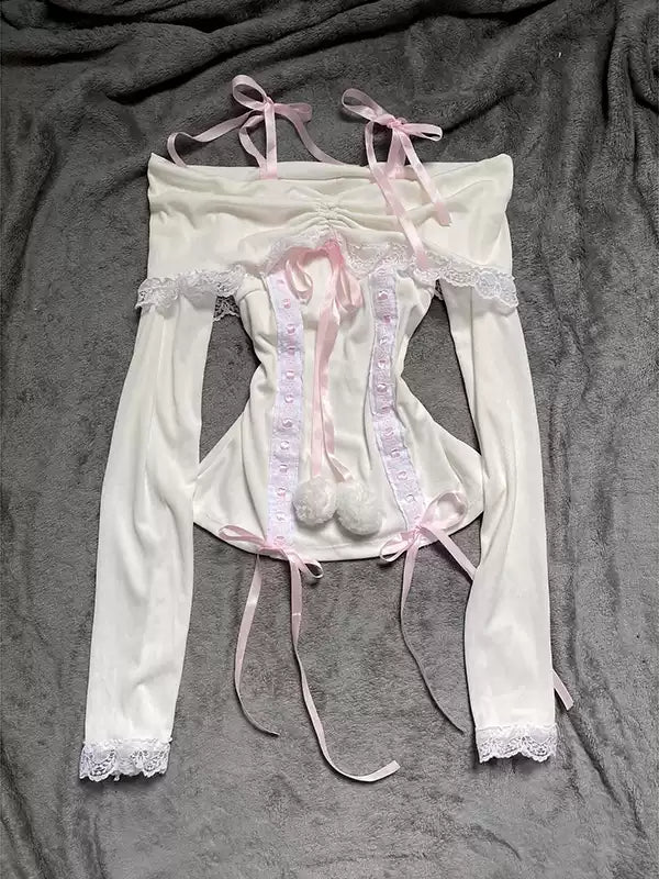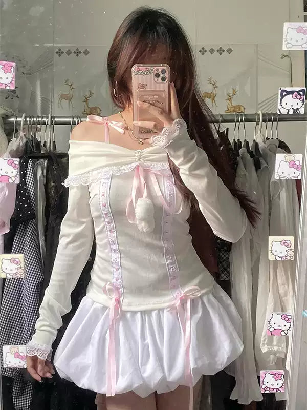 Elevate your wardrobe with the Bow Off-shoulder Long-sleeved Top, designed to blend elegance with effortless style. Its graceful off-shoulder cut showcases your neckline, while the long sleeves add a touch of sophistication. The charming bow detail enhances femininity, making it perfect for both casual outings and special occasions. Comfortable and flattering, this top is a versatile addition that highlights your confidence and style.