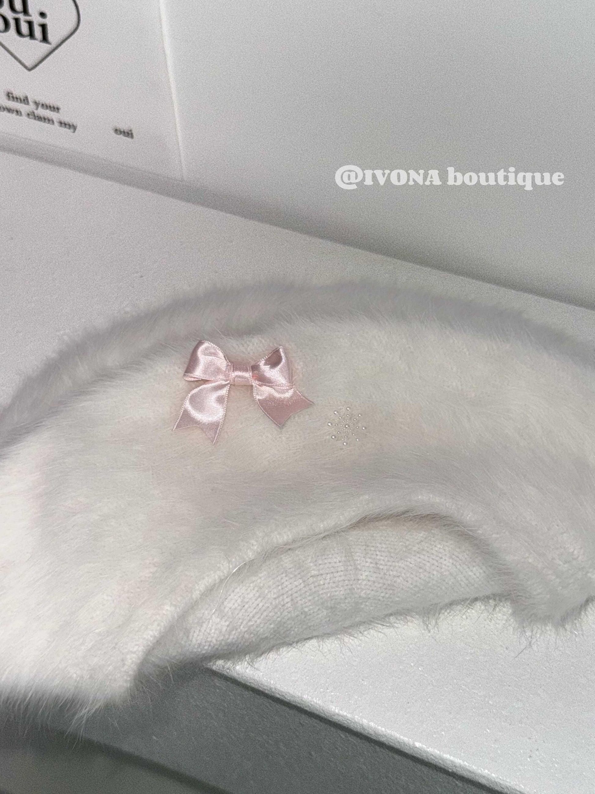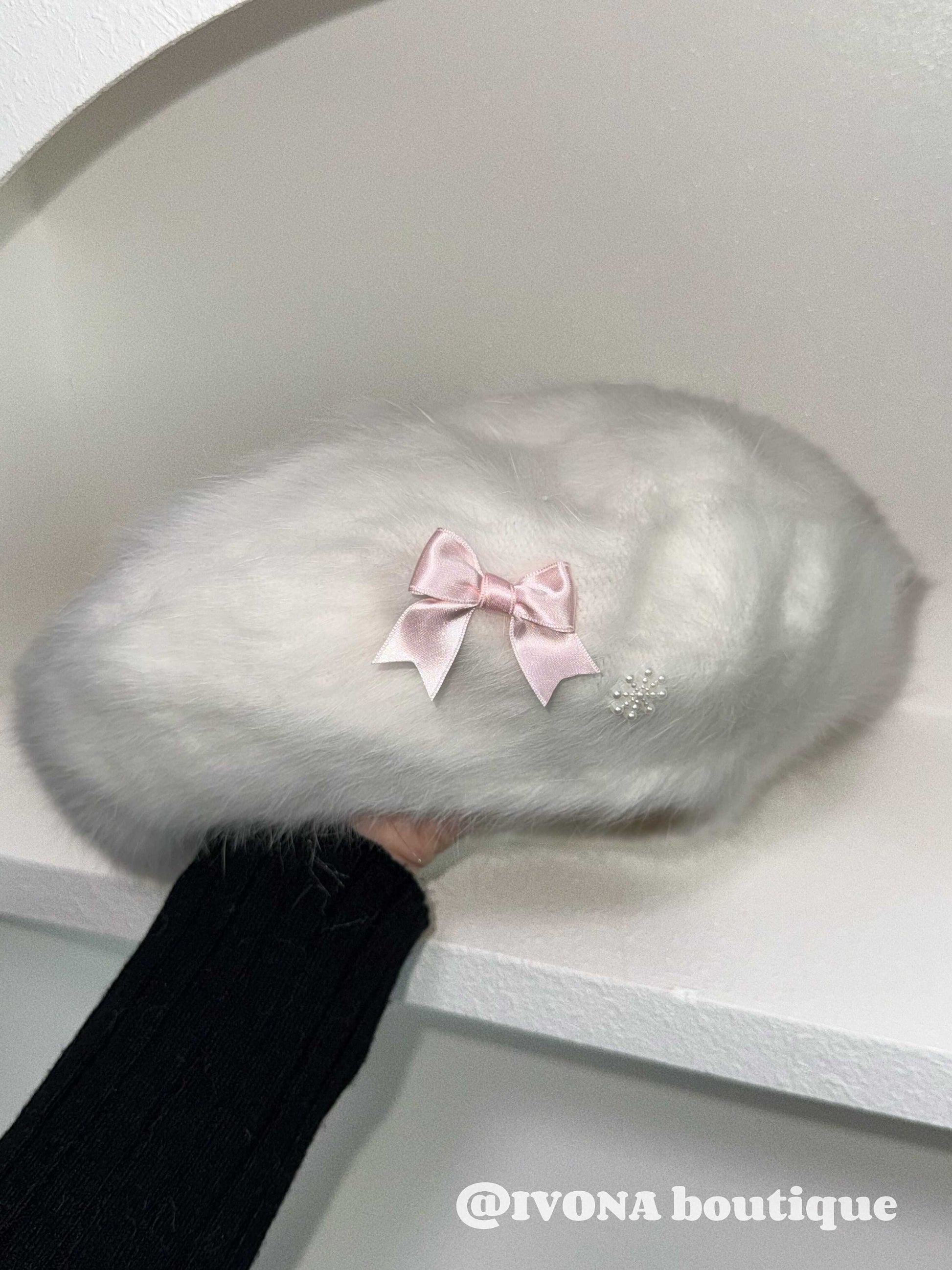 bow white fur kawaii hat