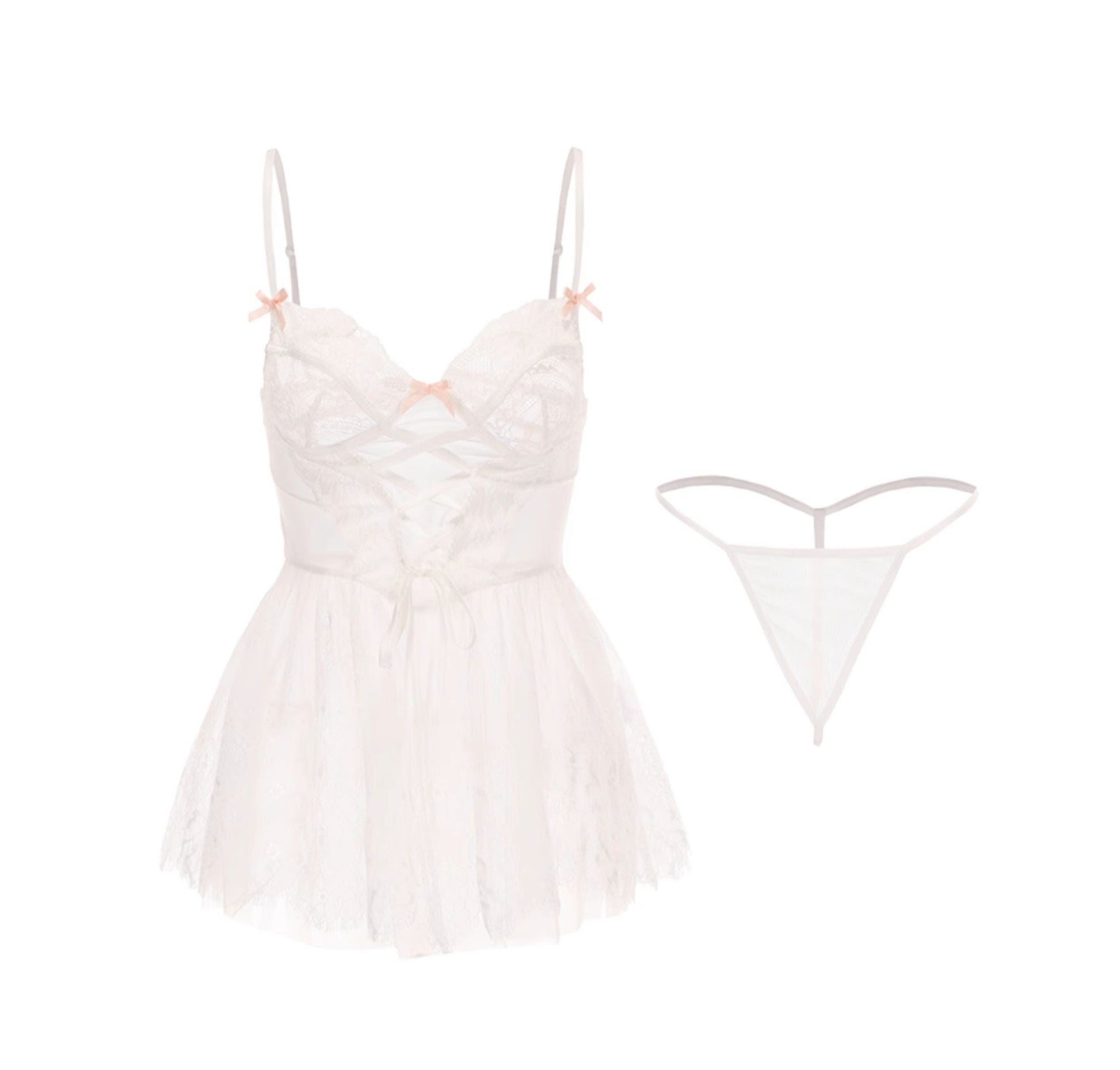 Elevate your nighttime elegance with the Bows Lace Suspender Nightgown. Crafted from delicate lace and featuring charming bow accents, this nightgown combines sensuality with comfort. The suspender design adds a flattering silhouette, making it perfect for special evenings or simply feeling beautiful at home. Experience a blend of allure and softness that enhances your confidence every night.