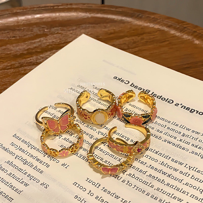 camellia butterfly kawaii ring