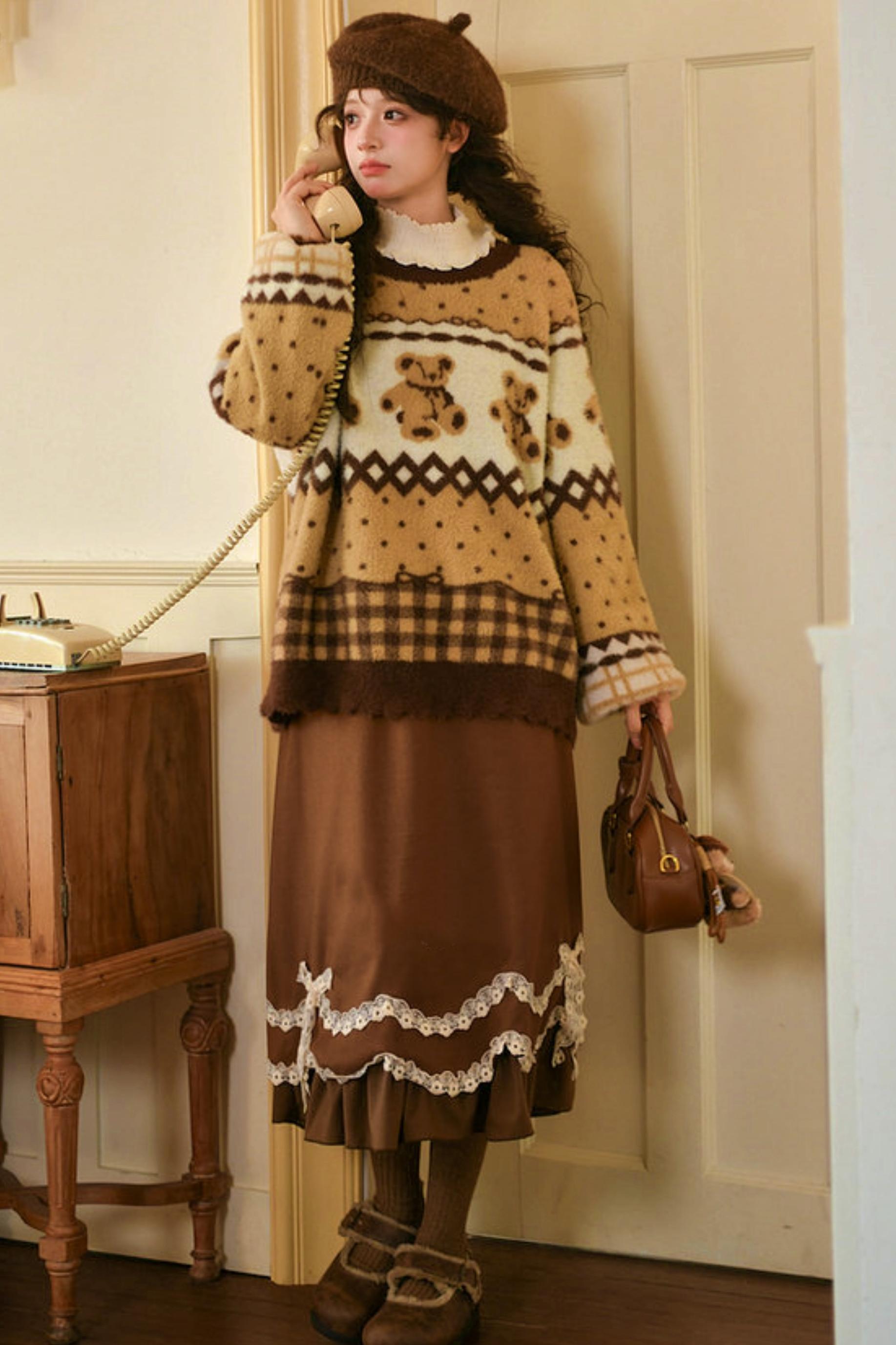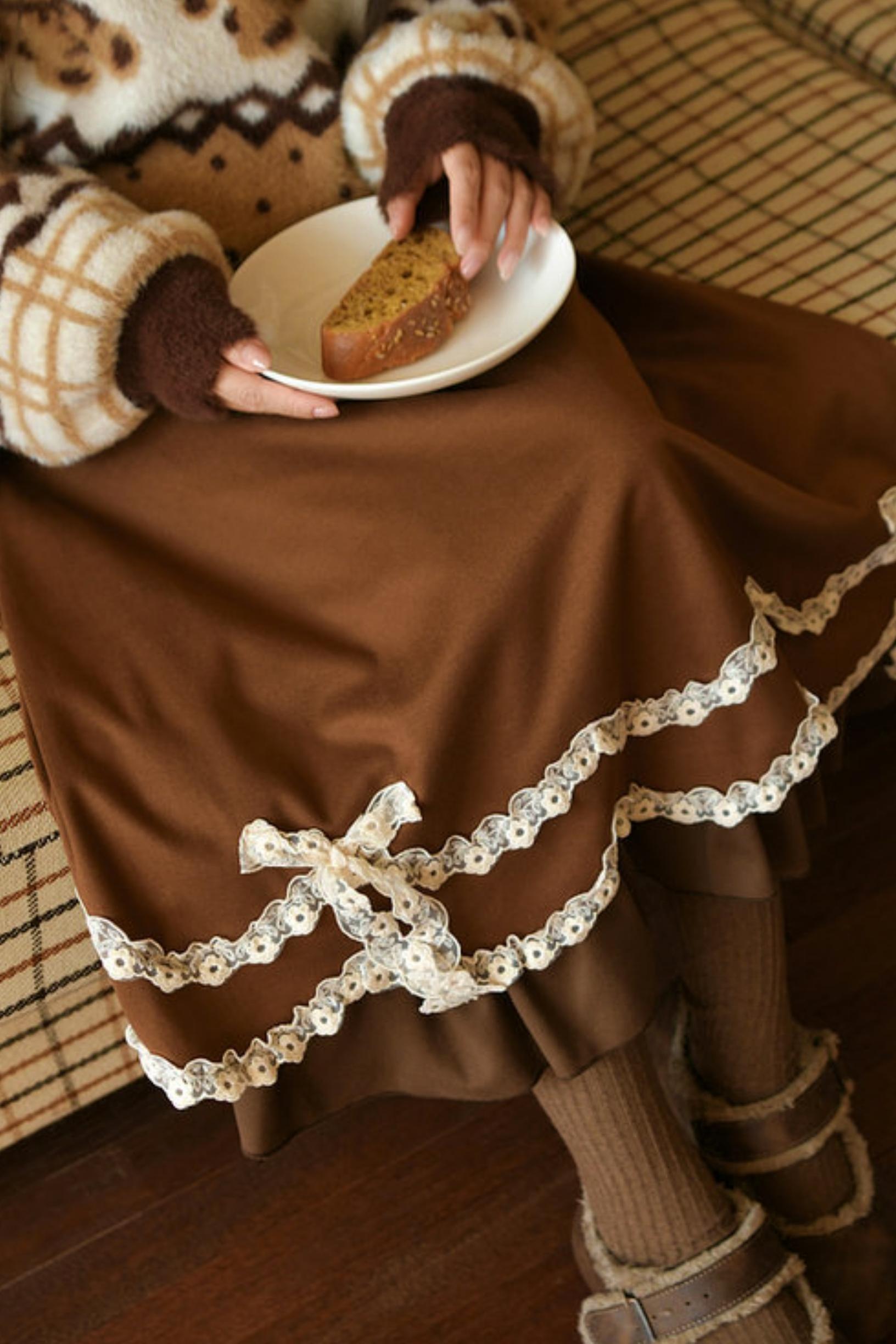 Caramel Lace High Waist Skirt