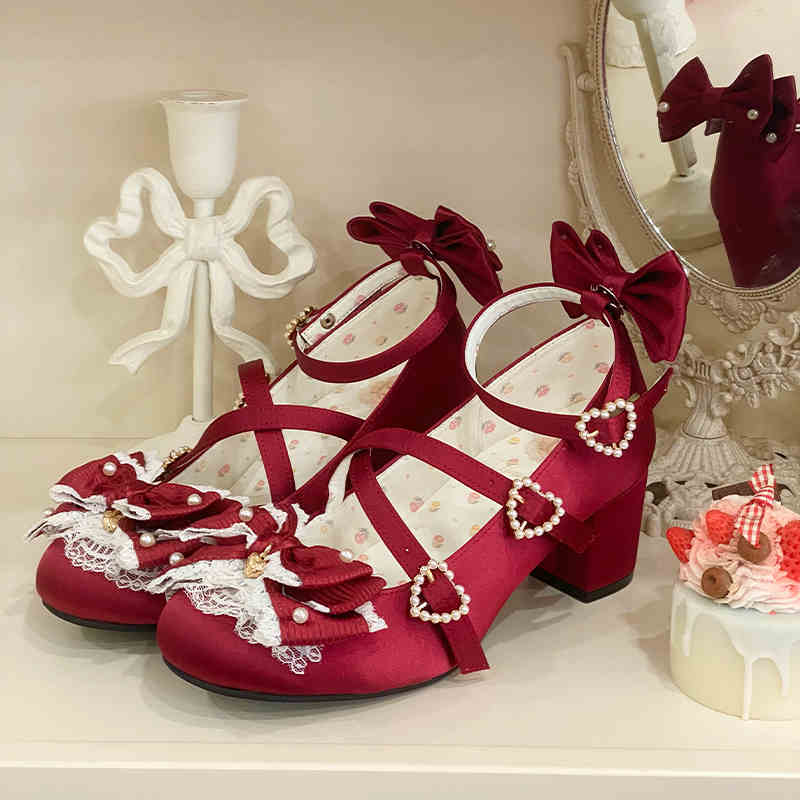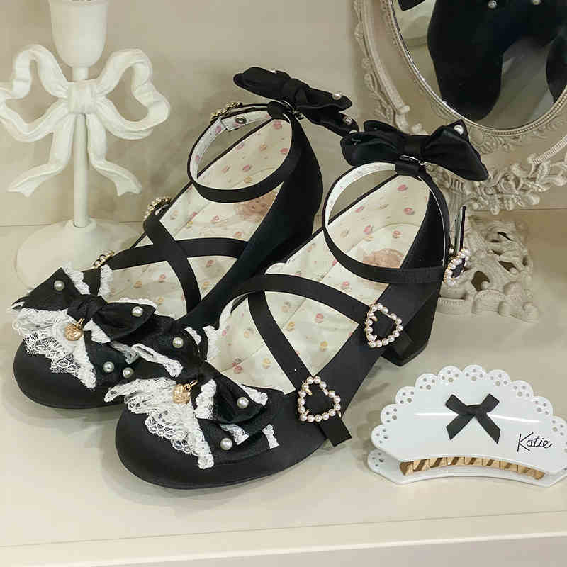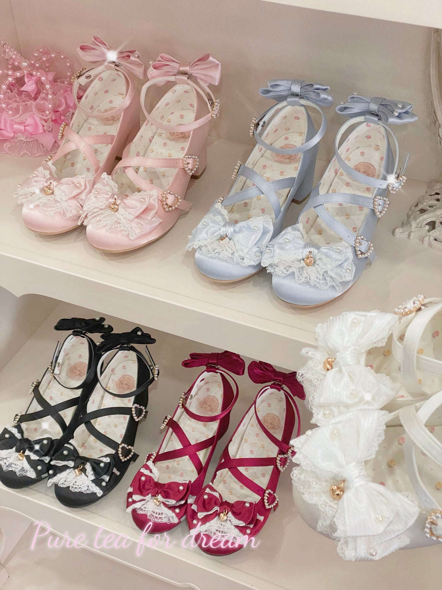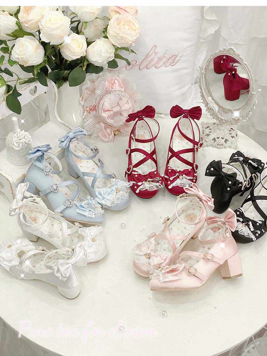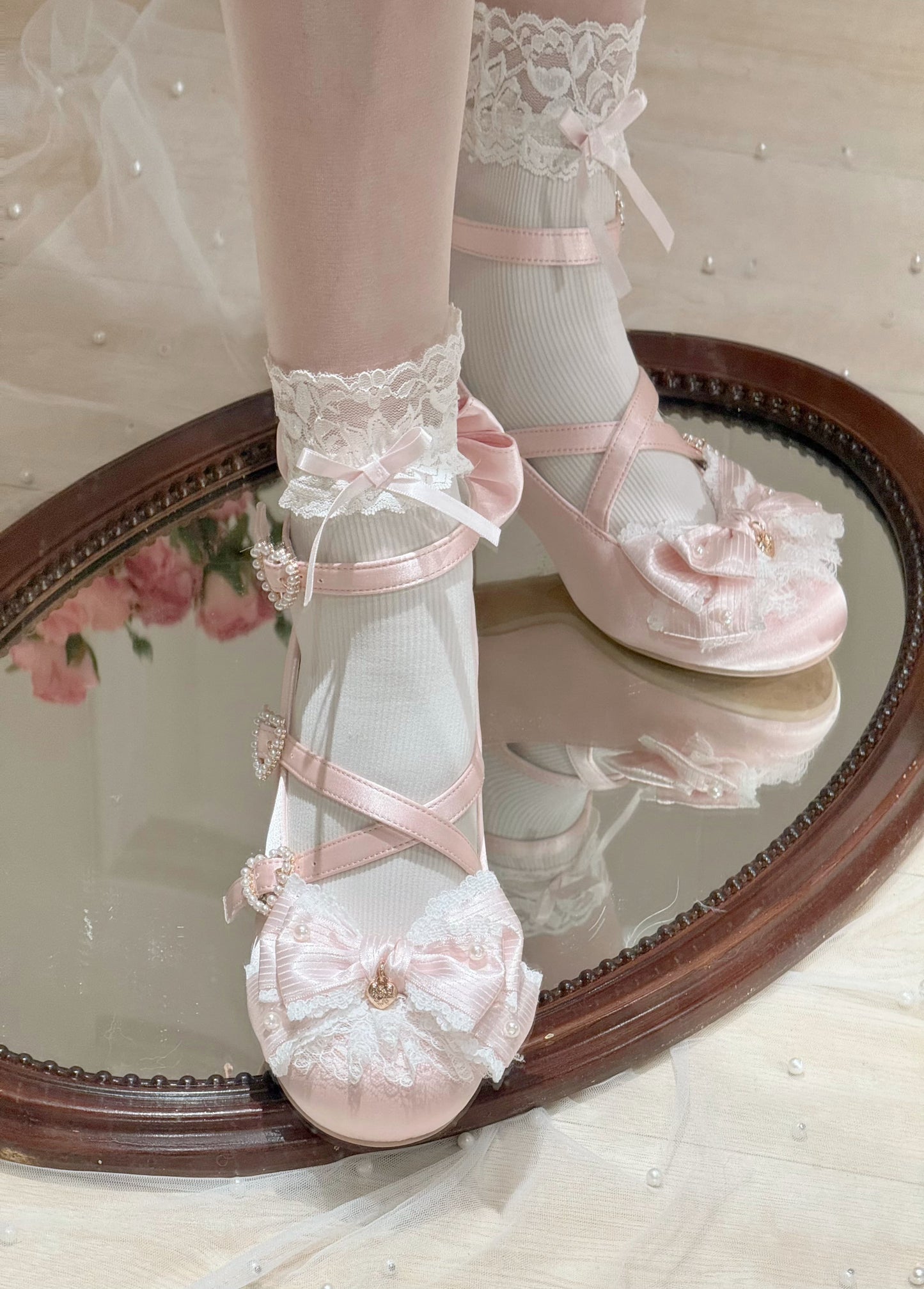 Cream Bows Lace Shoes