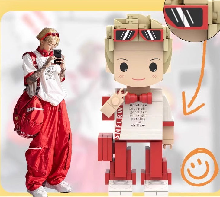 - Please contact us to provide customized requirements on the day of placing the order. - This product is a custom-made character image made from building blocks. It is limited by the building block parts themselves and cannot be 100% restored. It can provide strong characteristics that represent the object, and the degree of restoration will be better~ Customization process