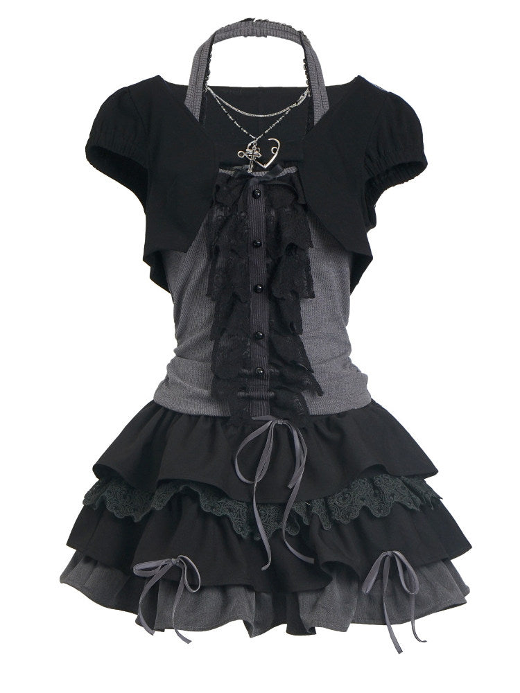 Embrace gothic elegance with this dark coquette bow coordinate set. Featuring delicate bow details and moody tones, this ensemble captures the essence of romantic darkness—perfect for those who love feminine style with an edge. Layer the pieces to create versatile looks that transition seamlessly from day to night. Whether you're channeling vintage-inspired charm or modern alternative fashion, this coord delivers sophisticated sophistication with every wear. Make a statement that's unmistakably you.