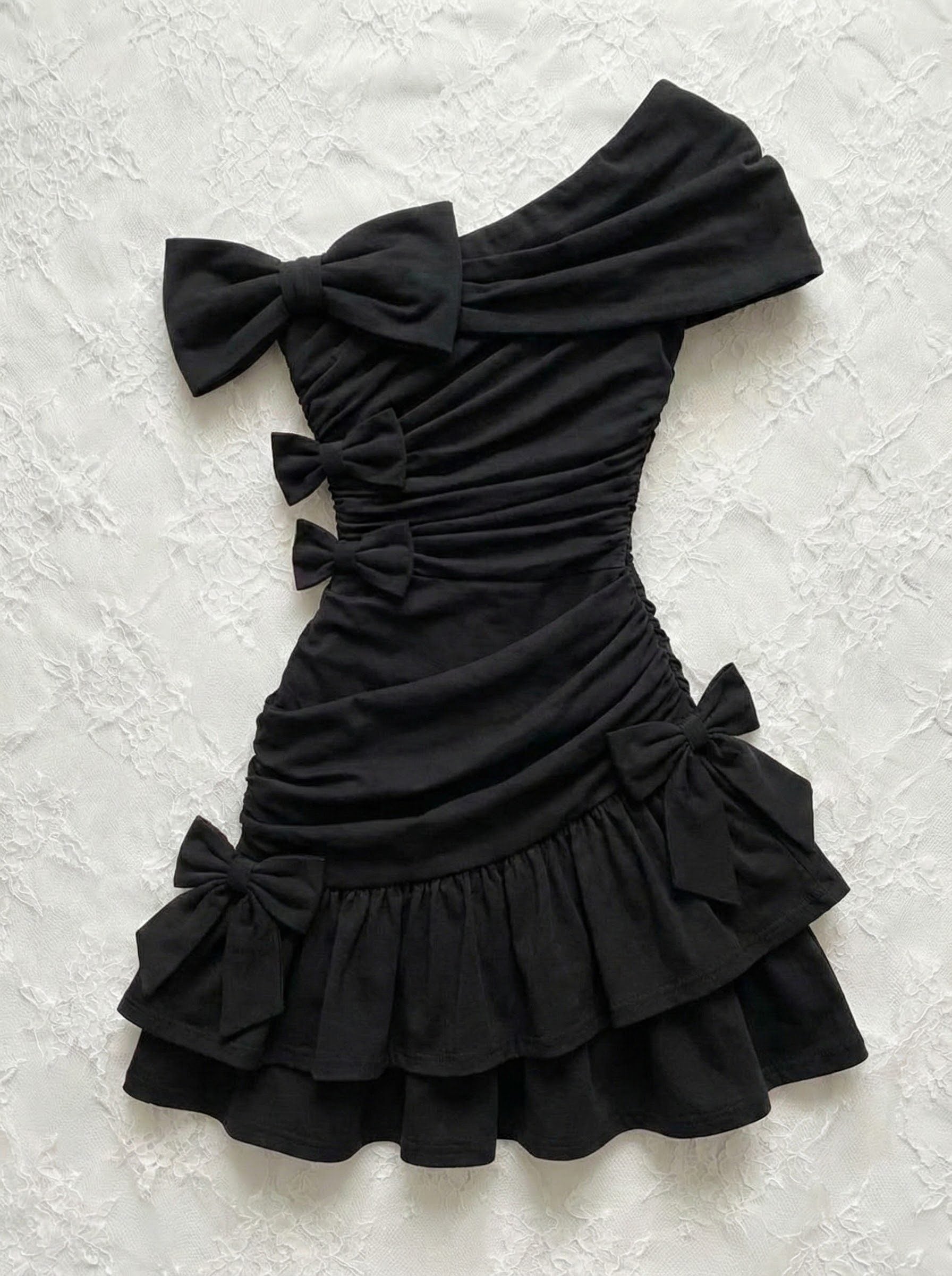 Step into refined elegance with this dark coquette bows dress—where timeless romance meets contemporary style. Adorned with signature bows that frame your silhouette, this piece channels sophisticated femininity with an undeniable allure. The deep, luxurious tones work seamlessly from day to evening, making it your go-to for creating memorable impressions. Perfect for those who understand that true style whispers rather than shouts. Invest in a dress that celebrates your most captivating self.