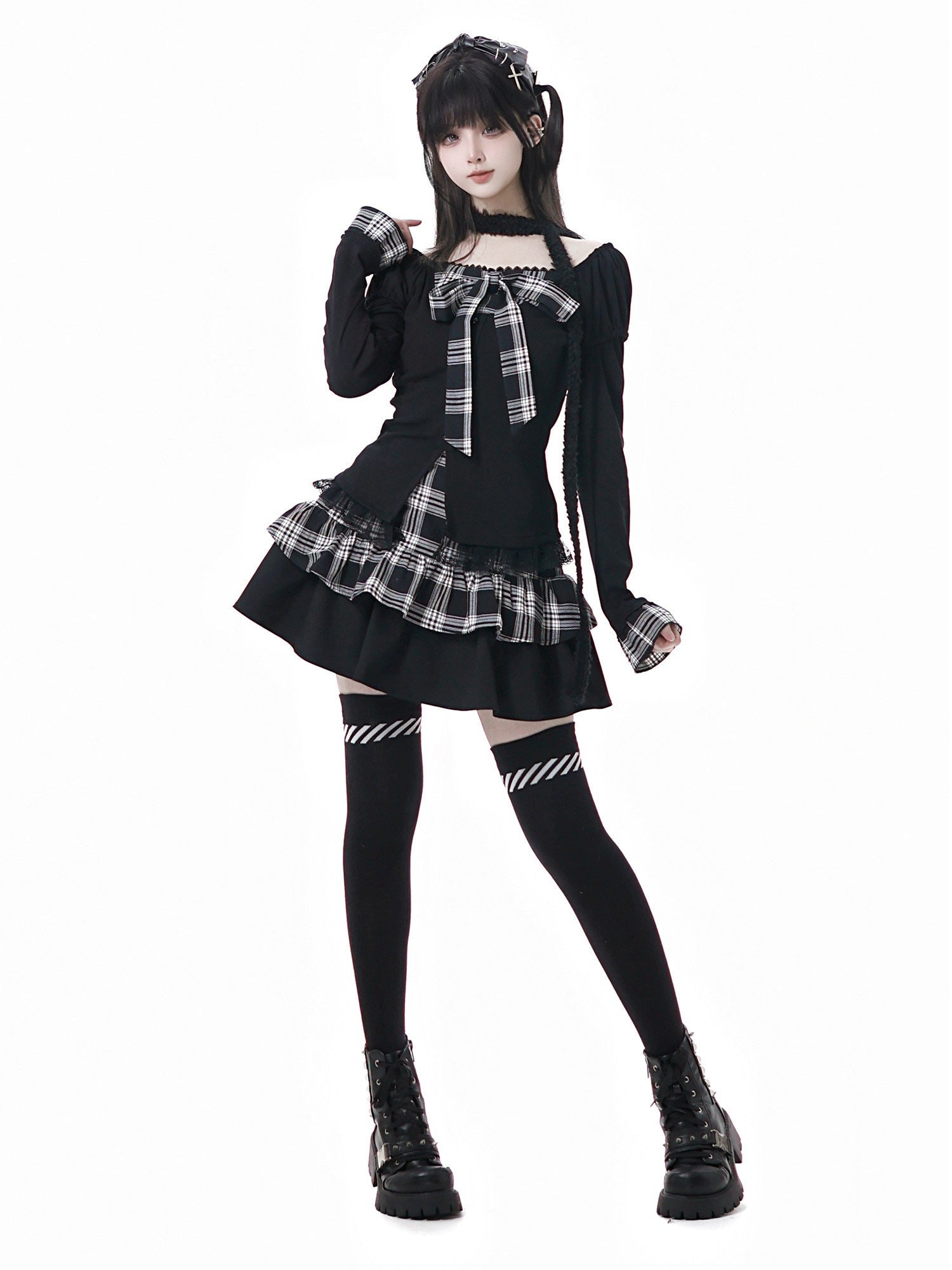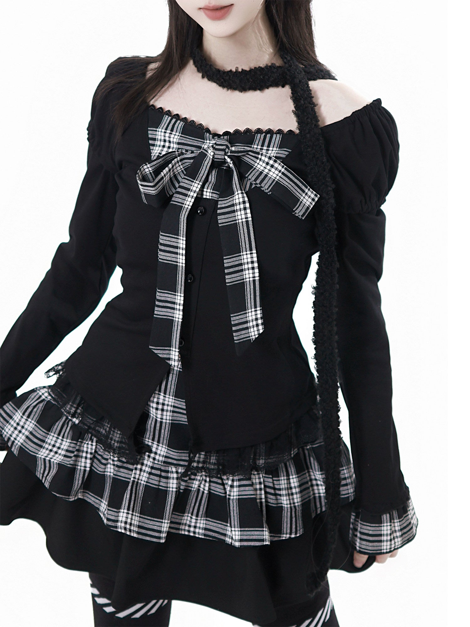 Embrace gothic elegance with this dark coquette plaid bow coordinate set. Featuring moody plaid patterns paired with delicate bow accents, this ensemble captures the essence of sophisticated dark femininity. Perfect for those who crave a bold yet refined aesthetic, the coordinated pieces work seamlessly together or separately for versatile styling. Elevate your wardrobe with this statement-making collection that blends edgy charm with timeless coquette appeal.