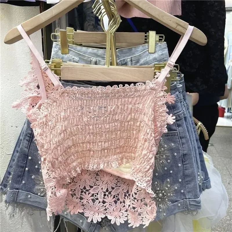 Whether you're dressing up for a fairycore picnic or adding some sparkle to your kawaii closet, this lace camisole is pure ethereal energy. It's cute, it's angel-approved, and it's basically your new favorite top for everything sweet and soft.