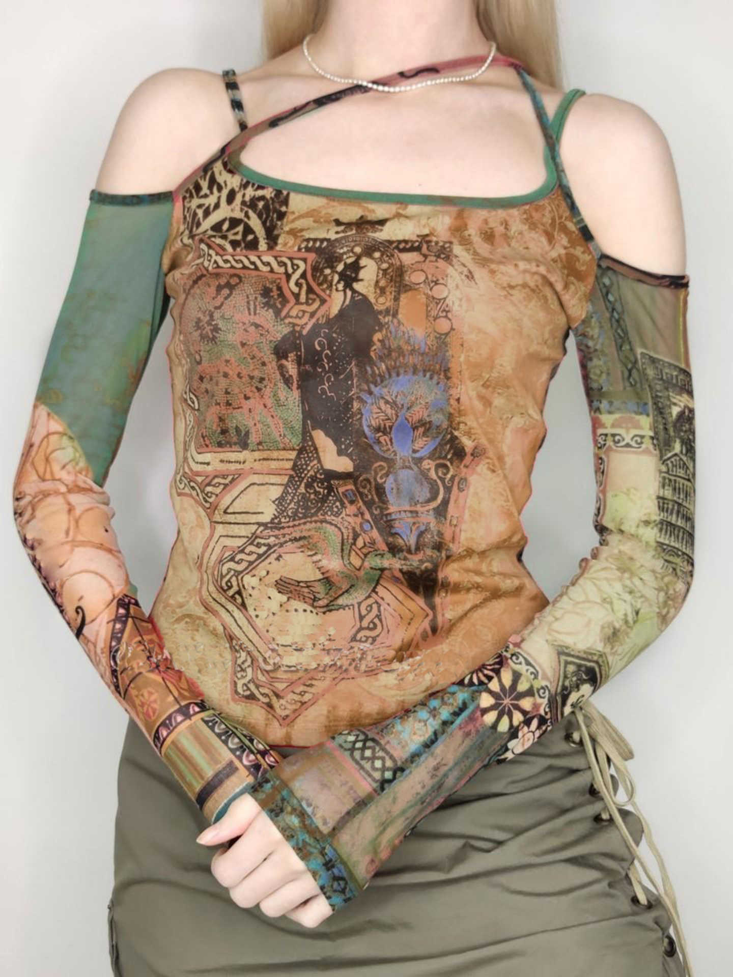 Embrace edgy elegance with the Fairy Grunge Mesh Long-sleeved Top. Crafted from breathable mesh, this top offers a daring yet comfortable fit that highlights your unique style. Its long sleeves provide subtle coverage while maintaining a lightweight feel, perfect for layering or wearing solo. Elevate your wardrobe with a piece that effortlessly blends grunge attitude and fairy-like charm.