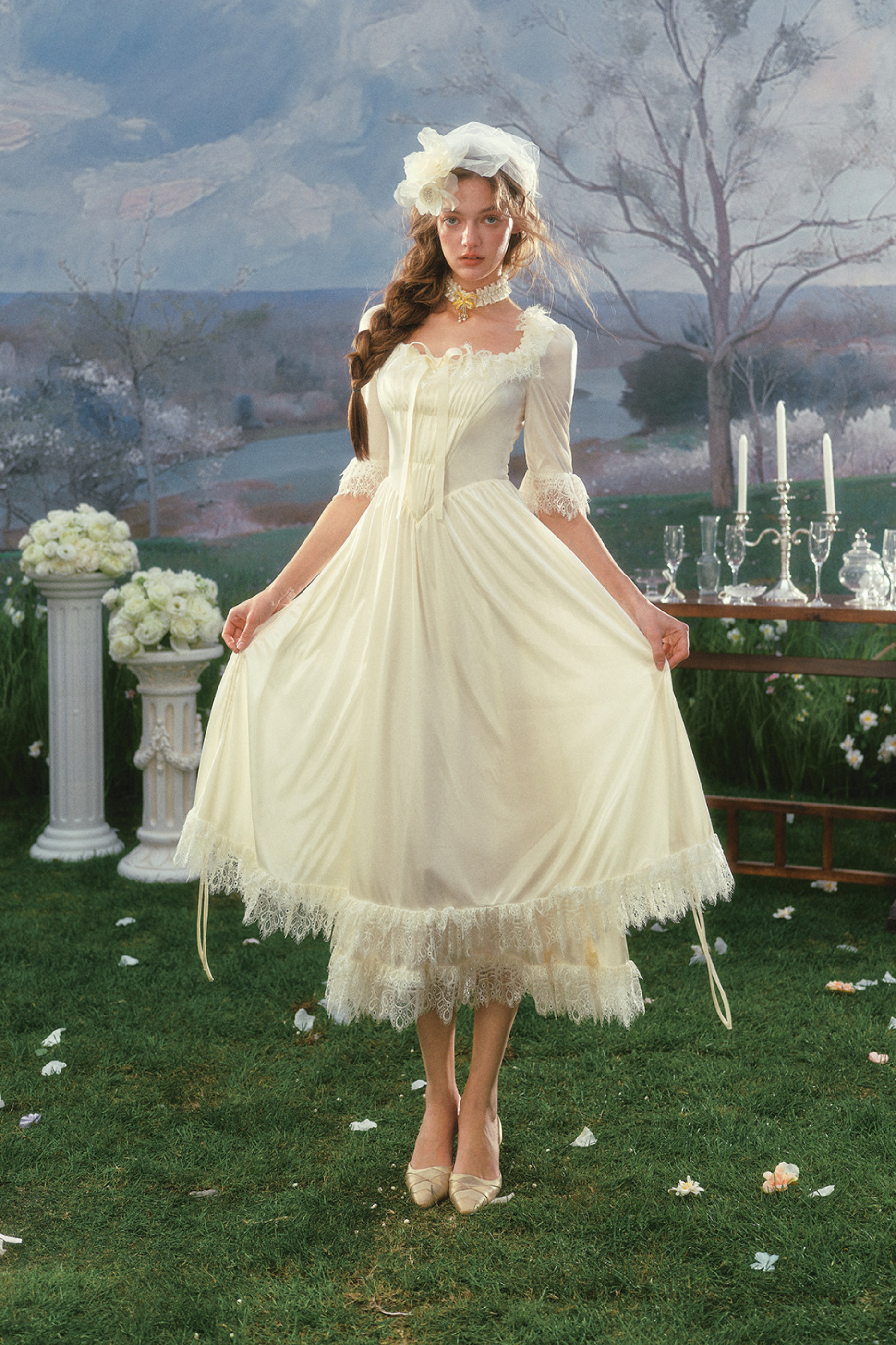 French Retro Satin Wedding Dress