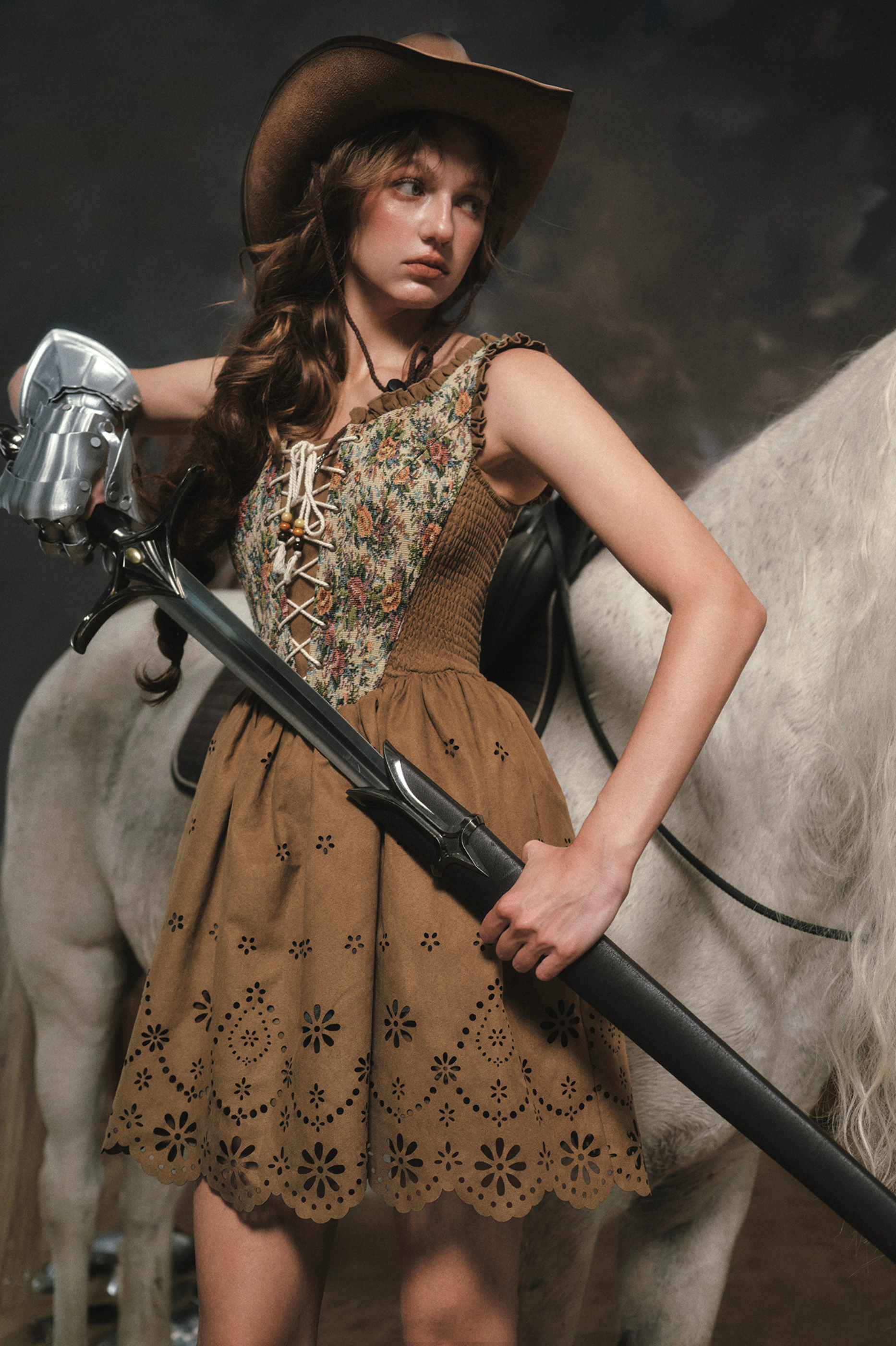 Embrace Western charm with this stunning suede vest dress. Crafted from soft, luxurious suede, this versatile piece combines classic cowgirl aesthetics with modern elegance. The structured vest silhouette flatters your figure while the flowing dress creates effortless movement. Perfect for ranch days, music festivals, or elevated casual wear. Layer it over your favorite tee or wear solo for a bold statement. Available in XS–XL with detailed sizing to ensure the perfect fit.