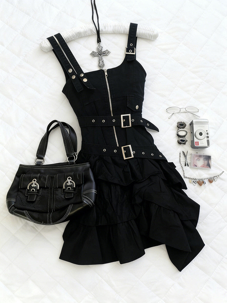 Embrace your darkest aesthetic with this striking goth straps suspender dress. Featuring bold adjustable suspenders and sleek design elements, this piece commands attention with its edgy sophistication. Perfect for those who dare to express their alternative style, the dress combines dramatic flair with wearable comfort. Whether you're heading to a night out or making a statement at any occasion, this goth essential delivers the moody elegance you crave. Transform your wardrobe with a piece that celebrates your bold, unapologetic edge.