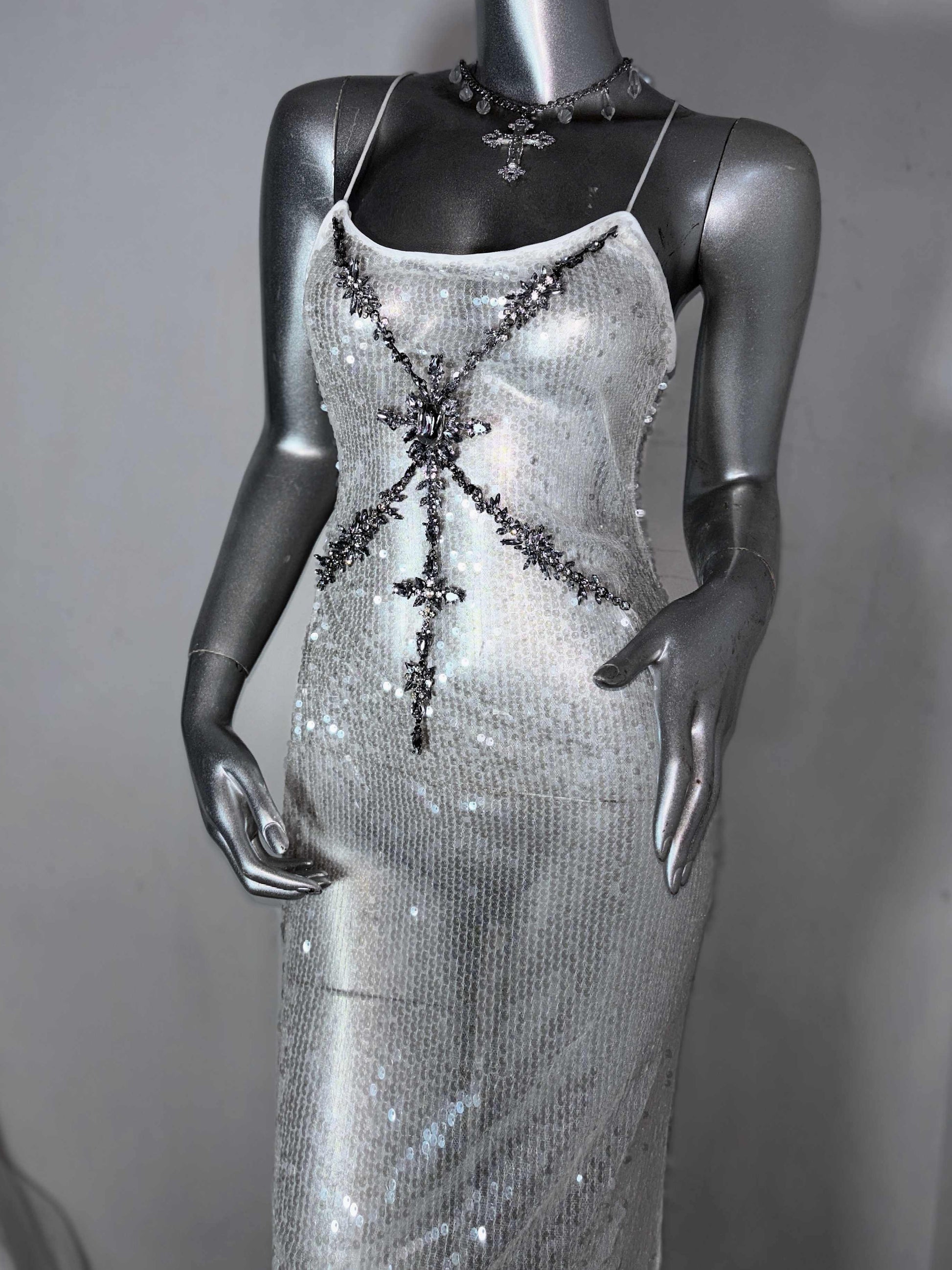 Elevate your evening with the Gothic Sparkling Dress, designed to captivate with its shimmering details and dark elegance. This dress combines a bold gothic aesthetic with sparkling accents that catch the light beautifully, making it perfect for standout occasions. Crafted to flatter your silhouette, it offers both style and confidence for unforgettable nights.